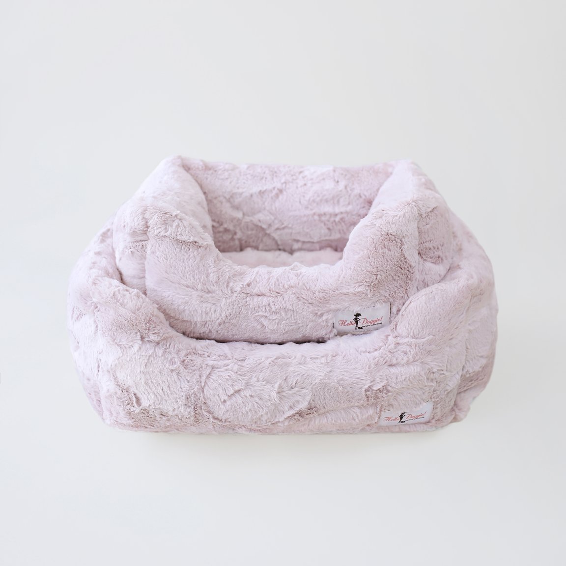 Allow your pup to experience the comfort and softness of this elegant Luxe Bed by Hello Doggie. Low rise front for easy access. Made from the highest quality of fabric and stuffed to perfection with 100% poly-fiber fill for longer-lasting fullness and durability. Reversible, machine washable and tumble dry for easy care. Small Bed - 10" x 7"    |    For dogs up to 4 lbs MSRP - $79.99 Large Bed - 14" x 10"  |    For dogs up to 10 lbs MSRP - $99.99 *Bed is handmade and sizes may vary slightly. Made in USA.
