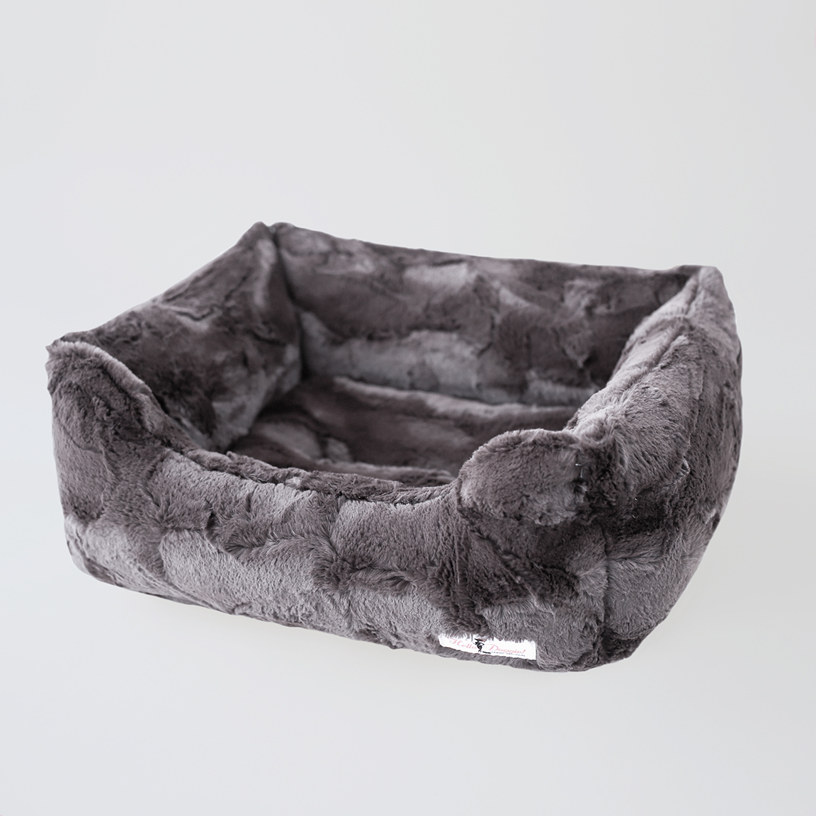 Allow your pup to experience the comfort and softness of this elegant Luxe Bed by Hello Doggie. Low rise front for easy access. Made from the highest quality of fabric and stuffed to perfection with 100% poly-fiber fill for longer-lasting fullness and durability. Reversible, machine washable and tumble dry for easy care. Small Bed - 10" x 7"    |    For dogs up to 4 lbs MSRP - $79.99 Large Bed - 14" x 10"  |    For dogs up to 10 lbs MSRP - $99.99 *Bed is handmade and sizes may vary slightly. Made in USA.